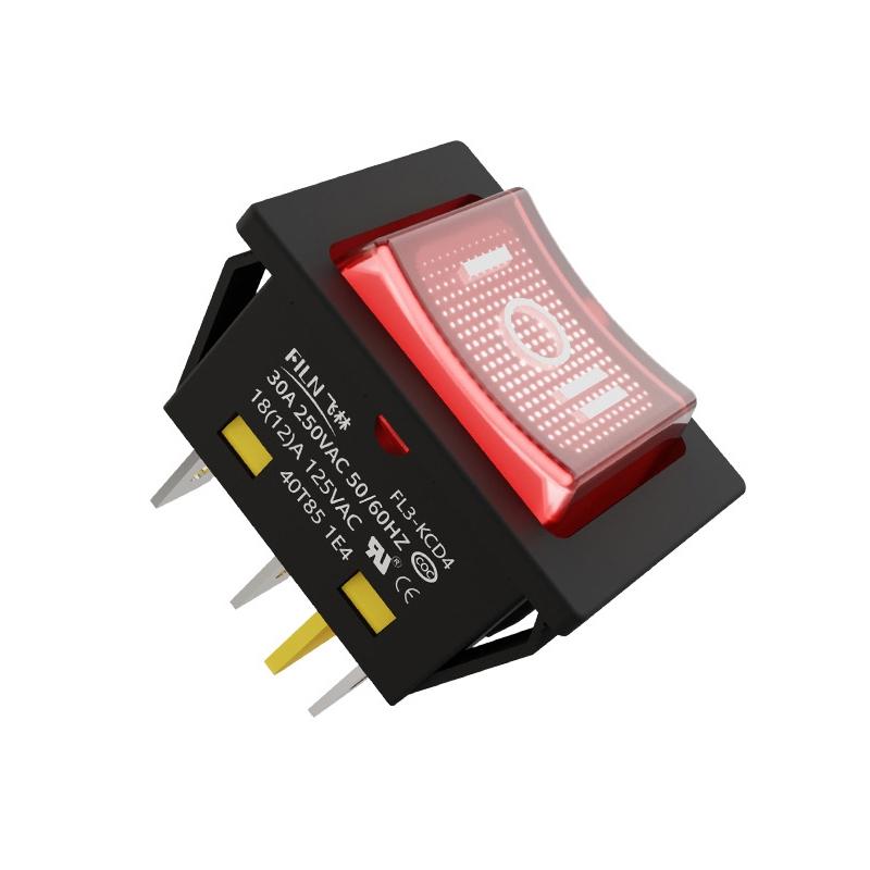 FILN 220V 30A Split Dustproof Boat-type Switch With Light, Specifications: No Waterproof 6 Pin 3 Gear Red Light (FILN)
