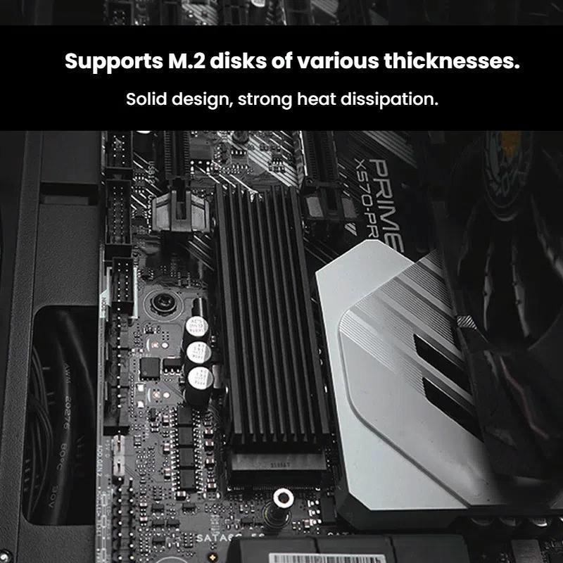 1. Suitable for M.2 2280 solid state drives, with high-quality thermal conductive silicone pads, quickly conduct heat to avoid overheating and slowing down.