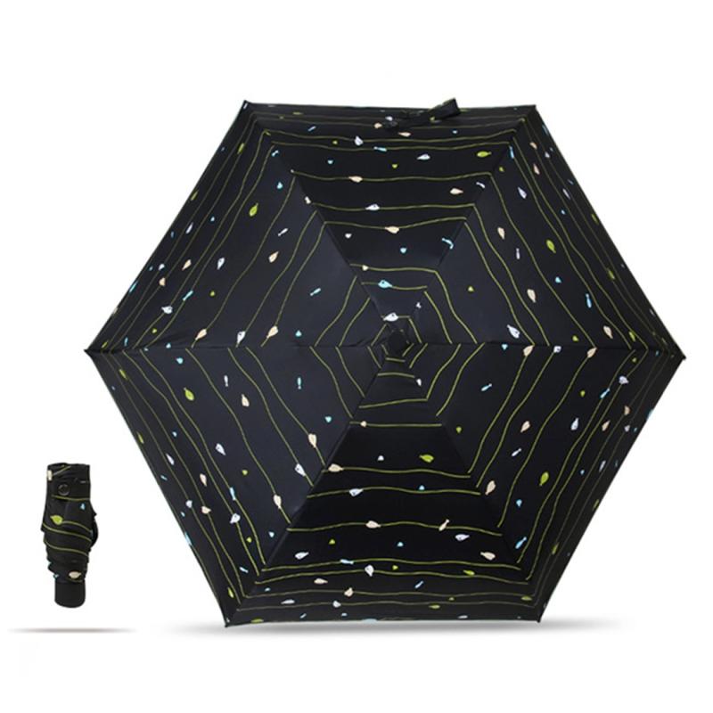 Five Folding Ultralight Umbrella, Women Waterproof Anti-UV (Black Stripe Pattern)