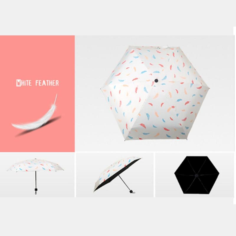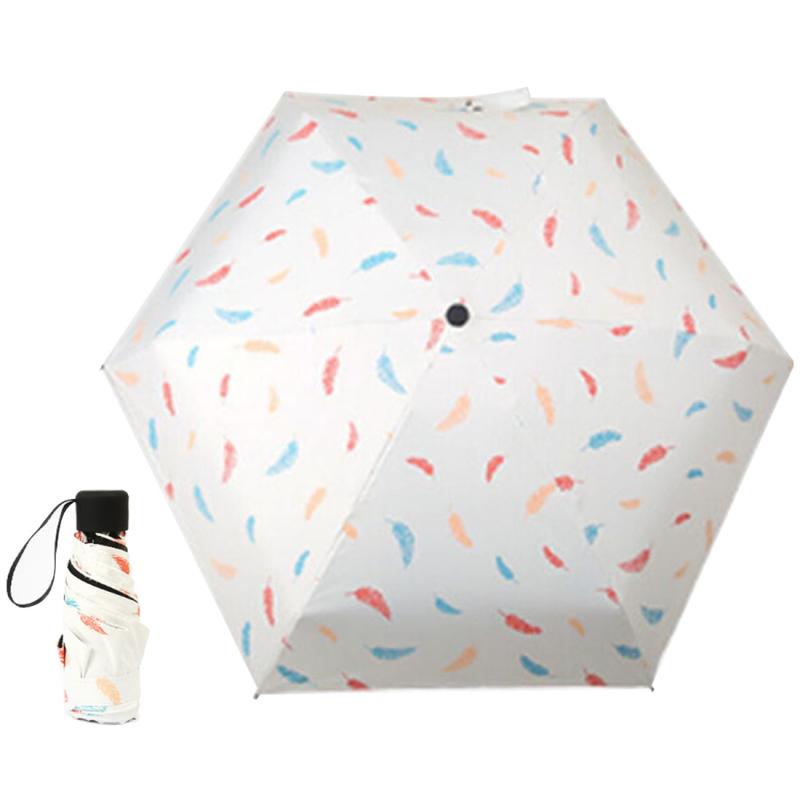 Five Folding Ultralight Umbrella, Women Waterproof Anti-UV (White Feather Pattern)