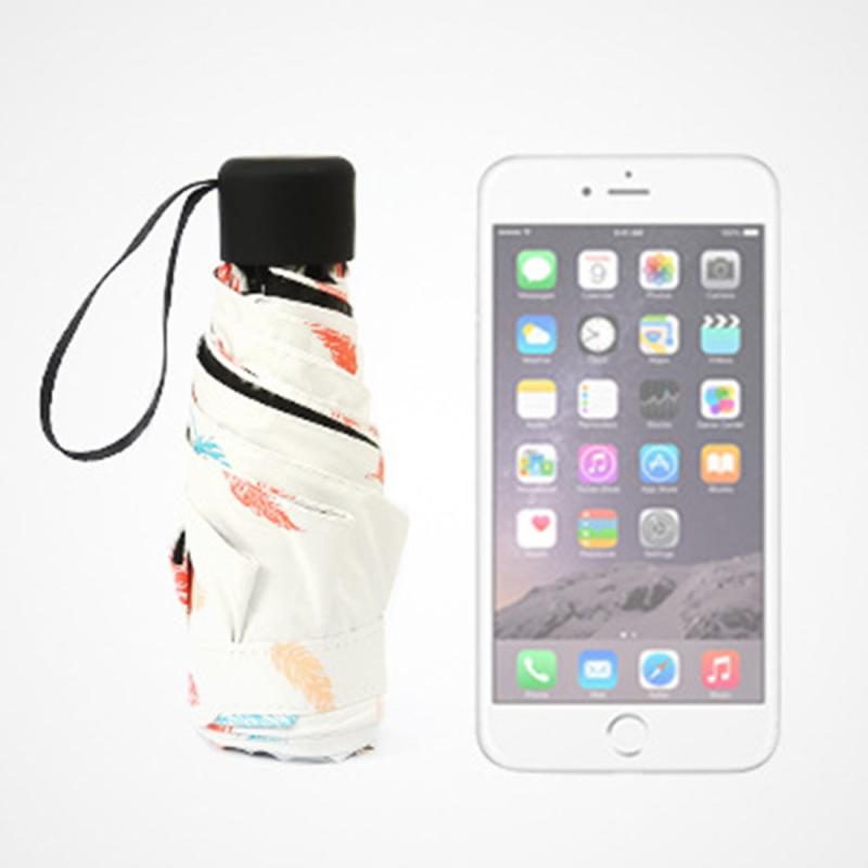 Minimum quantity for "Five Folding Ultralight Umbrella, Women Waterproof Anti-UV (White Feather Pattern)" is 100.