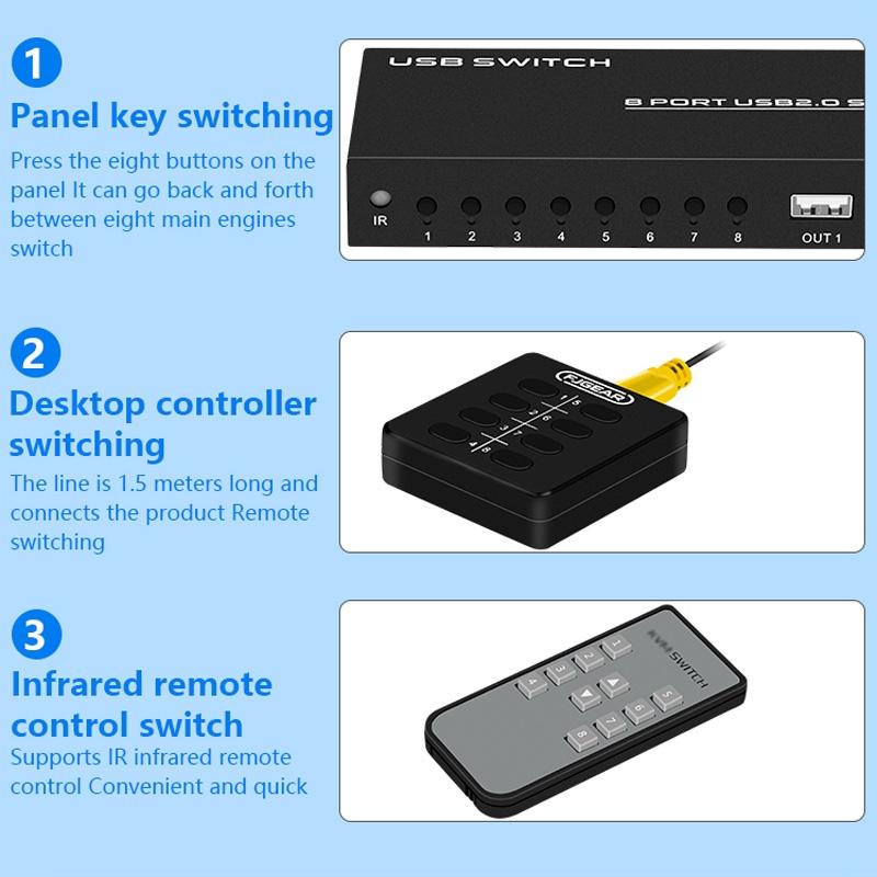 7. Desktop controller one-key second cut eight keys can be switched back and forth between the eight hosts