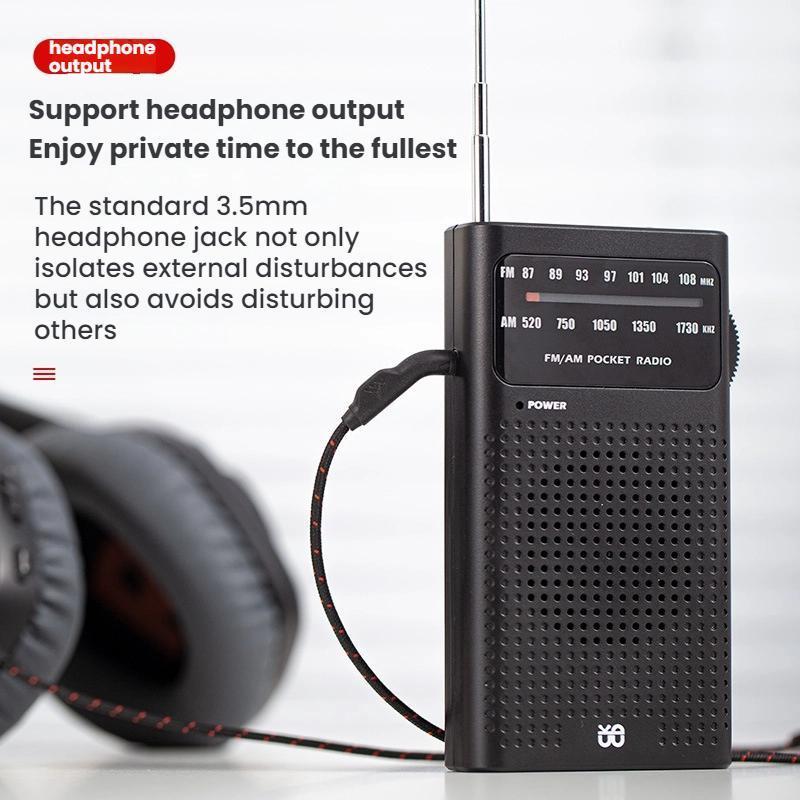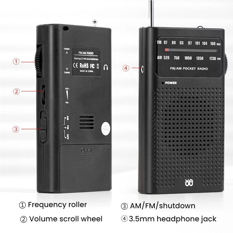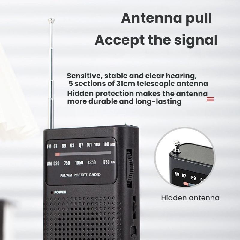 FM/AM Full-Band Channel Pocket Portable Pointer Radio Player(Black)