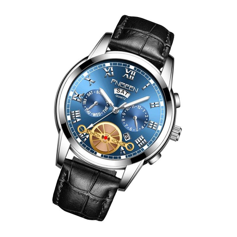 FNGEEN 4001 Men Watch Multi-Function Quartz Watch, Colour: Black Leather White Steel Blue Surface (FNGEEN)