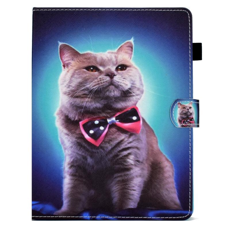 For 10 inch Tablet Sewing Pen Slot Leather Tablet Case(Bow Tie Cat)