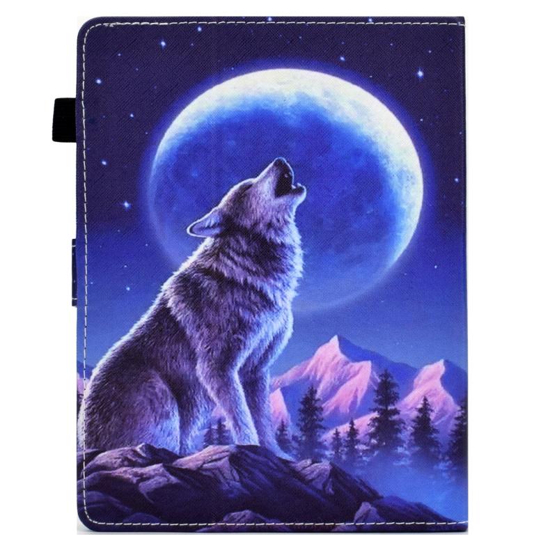 For 10 inch Tablet Sewing Pen Slot Leather Tablet Case(Night Wolf)