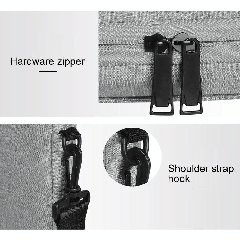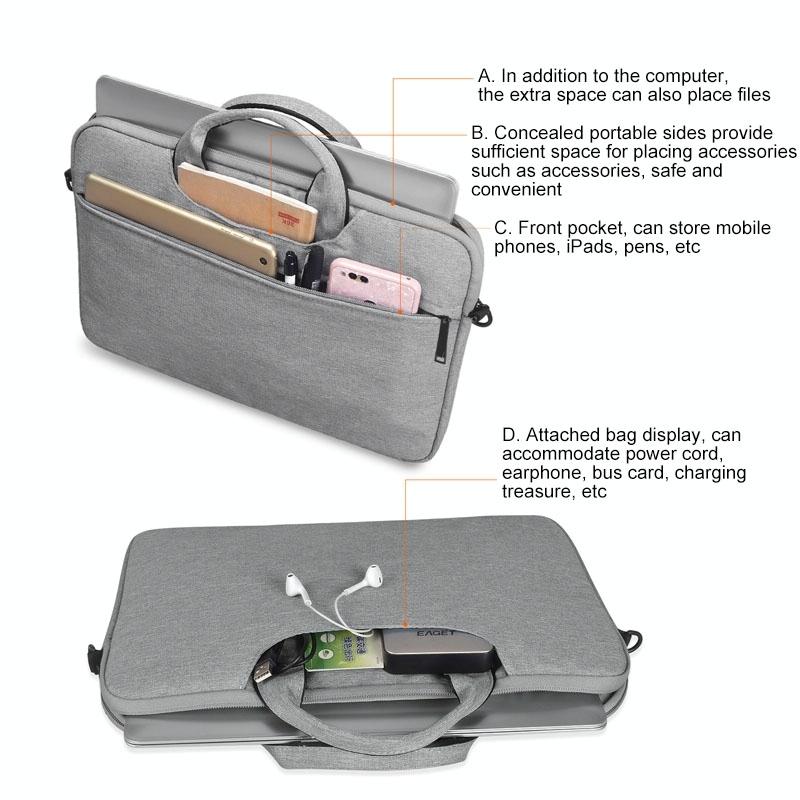 1. Large-capacity storage items: In addition to the computer, the extra space can also be placed in the main space. The hidden portable sides provide enough space for placing accessories such as accessories, which is safe and convenient. The front side has a pocket for storing mobile phones, iPads, pens and more. The rear pocket can accommodate power cords, earphones, bus cards, charging treasures, and more.