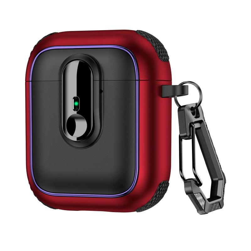 For AirPods 1 / 2 Armor Magnetic Wireless Earphones Case with Security Lock(Black Red)