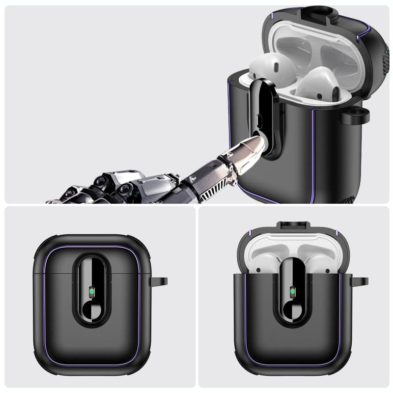 For AirPods 1 / 2 Armor Magnetic Wireless Earphones Case with Security Lock(Black)