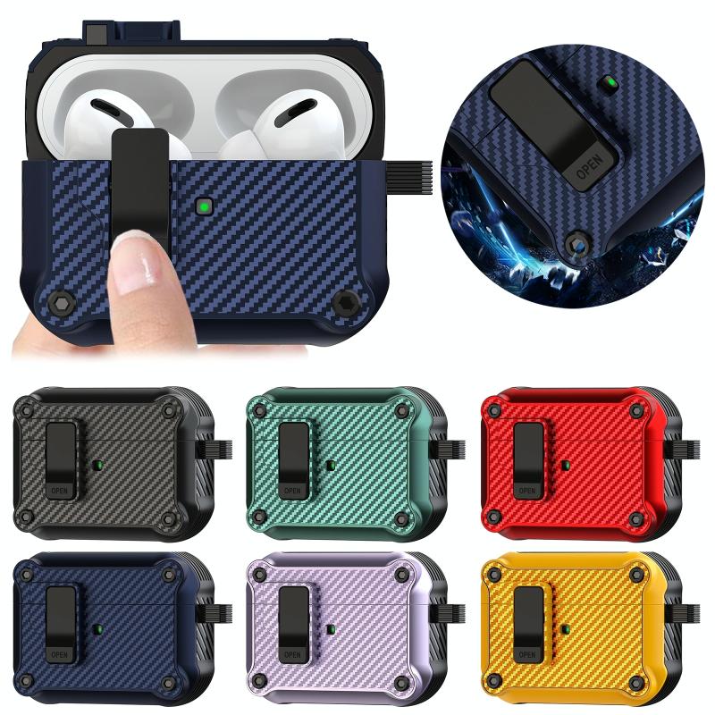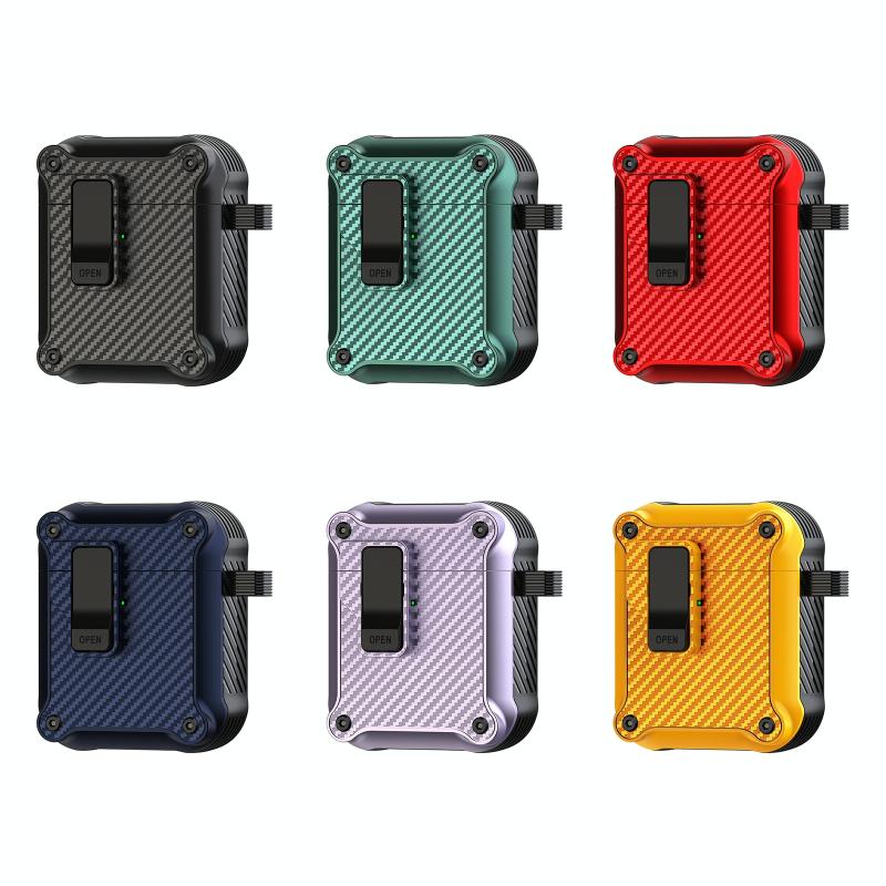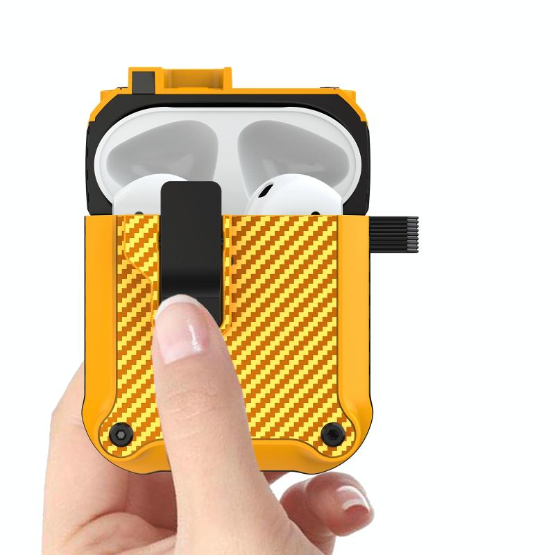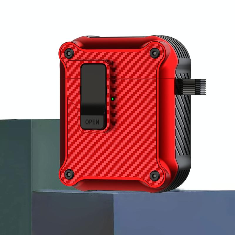 For AirPods 1 / 2 Carbon Fiber Magnetic Automatic Switch Earphone Protective Case(Red)