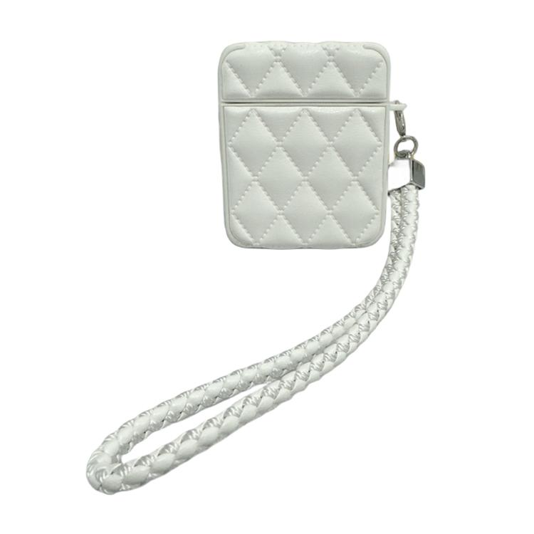 For AirPods 1 / 2 Down Coat Texture PU Earbuds Box PC Case with Lanyard(White)