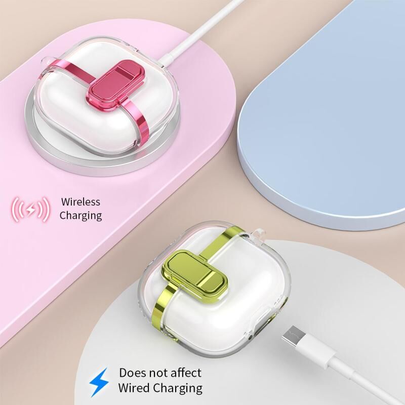 For AirPods 1 / 2 Electroplating Transparent Wireless Earphones Case with Security Lock(Pink)