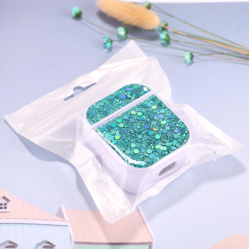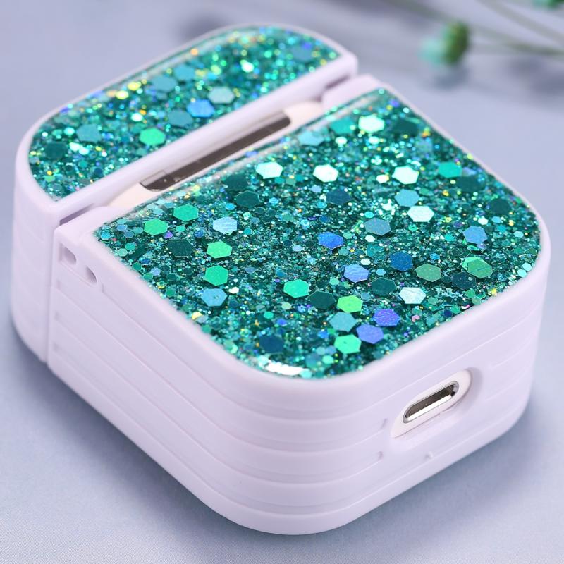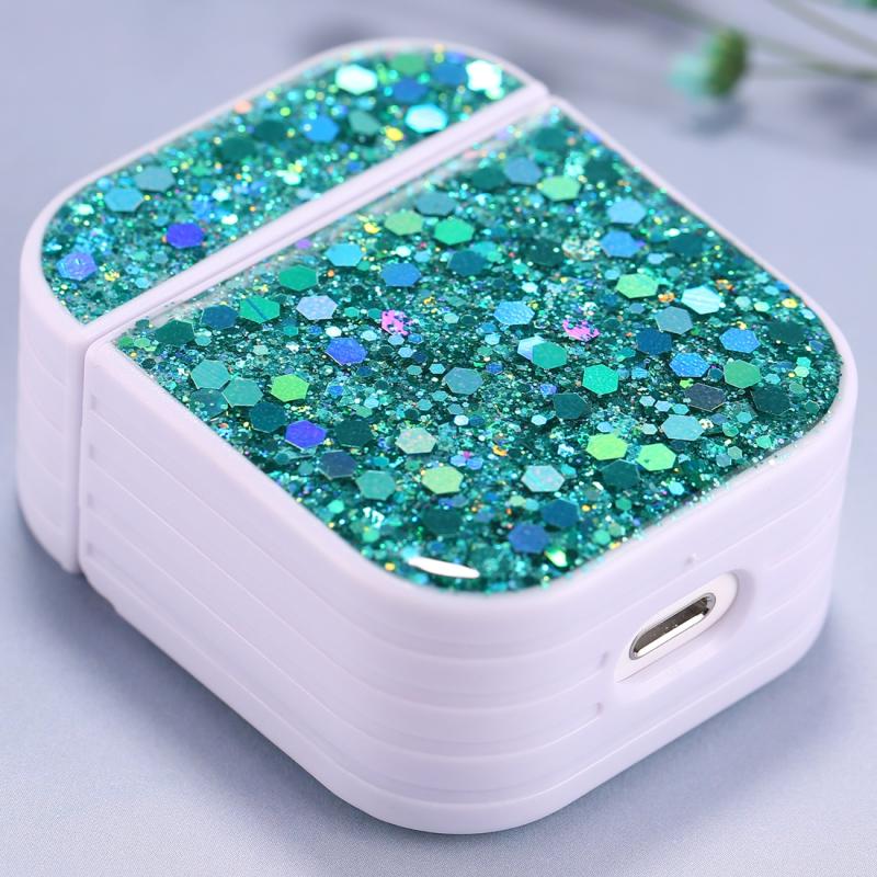 For AirPods 1 / 2 Glitter Sequins Wireless Earphone Protective Case(Lake Blue)