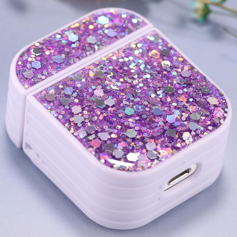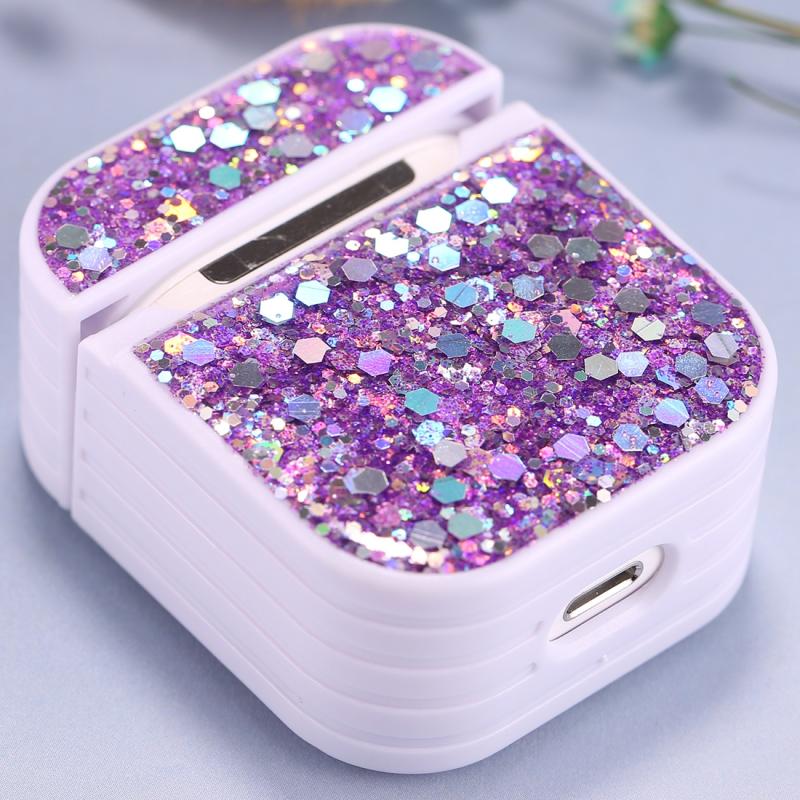 For AirPods 1 / 2 Glitter Sequins Wireless Earphone Protective Case(Purple)
