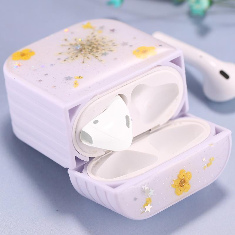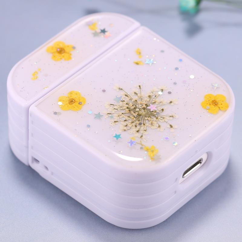 For AirPods 1 / 2 Gypsophila Flowers Pattern Wireless Earphone Protective Case(Yellow)