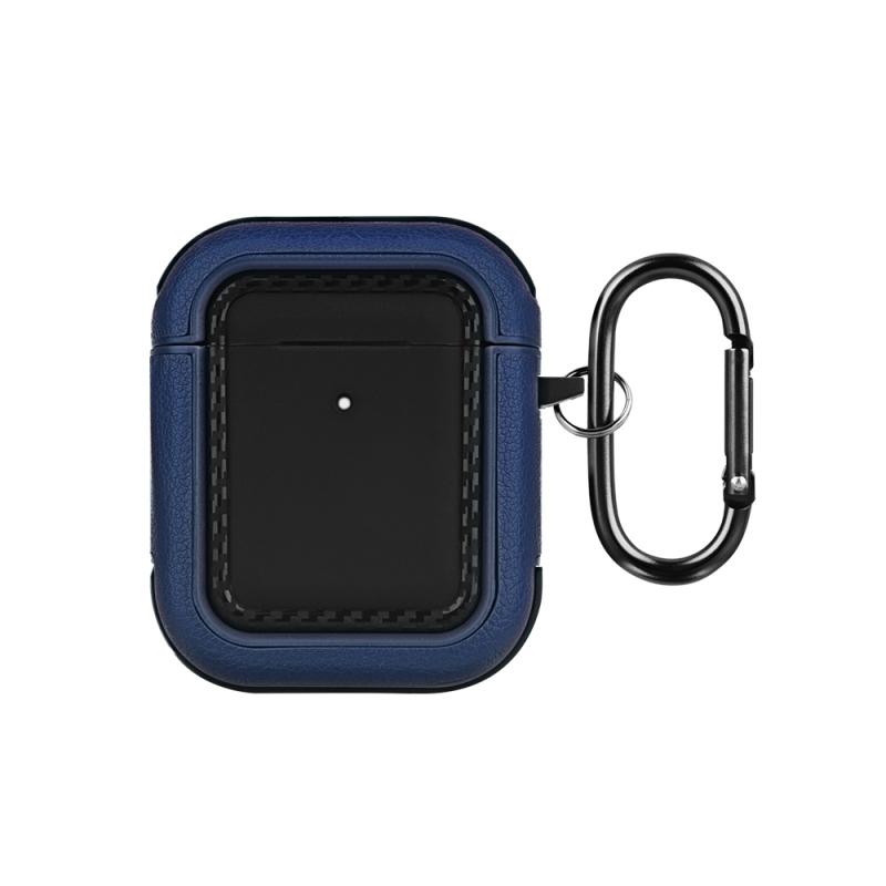 For AirPods 1 / 2 Leather Texture Earphone Protective Case(Black + Deep blue)