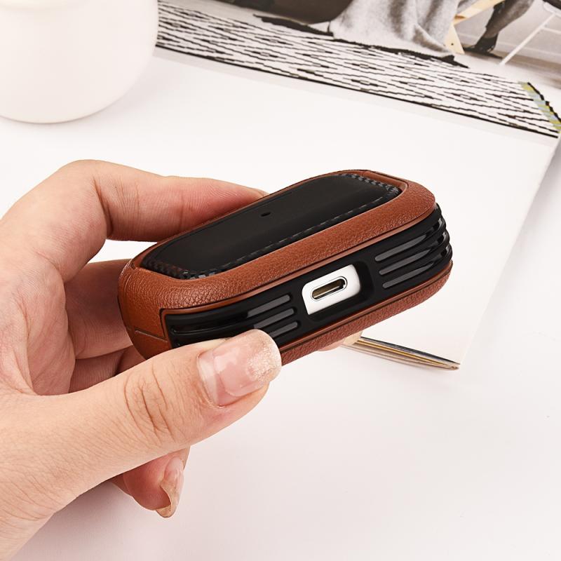 For AirPods 1 / 2 Leather Texture Earphone Protective Case(Black White)