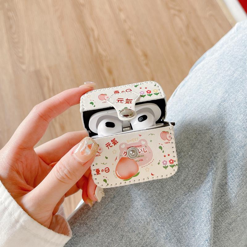 For AirPods 1/2 PU Leather Wireless Earphone Case(Peach)