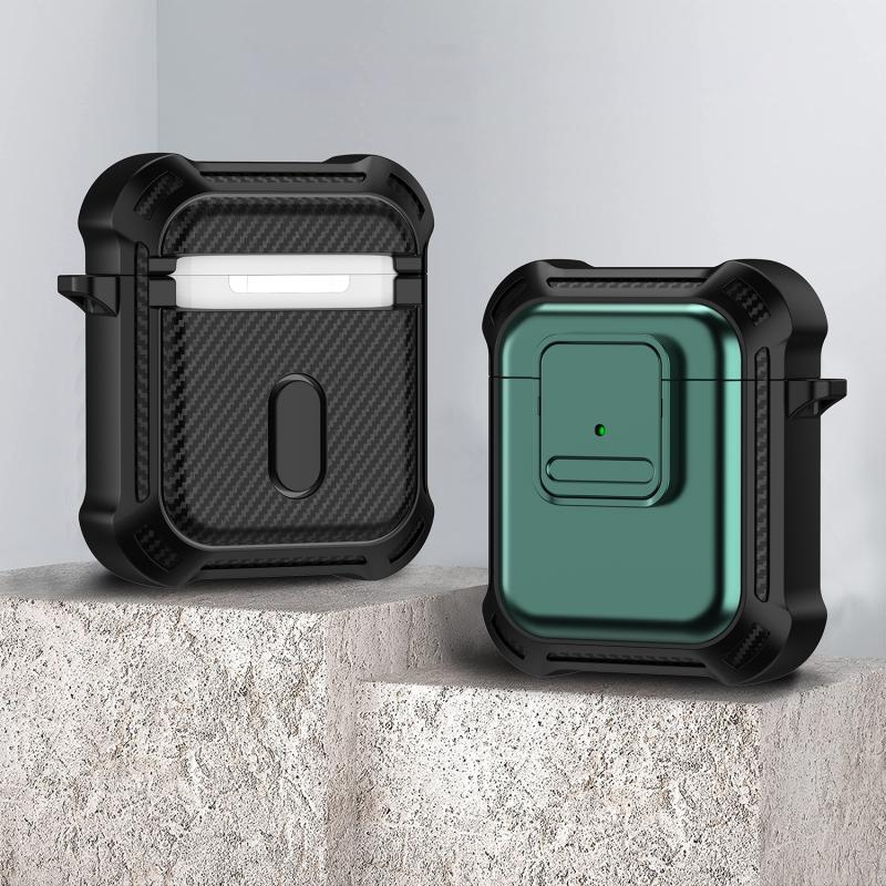 For AirPods 1 / 2 TPU + PC Shockproof Earphone Protective Case with Switch(Green)