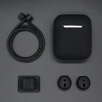 Anti-lost Rope + Silicone Case + Earphone Hang Buckle + Earplug Cover Bluetooth Wireless Earphone Cover Case Set for Apple AirPods 1 / 2(Black)
