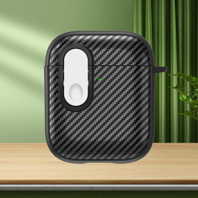 For AirPods 2 / 1 Carbon Fiber Texture Wireless Earphones Case with Security Lock(White)