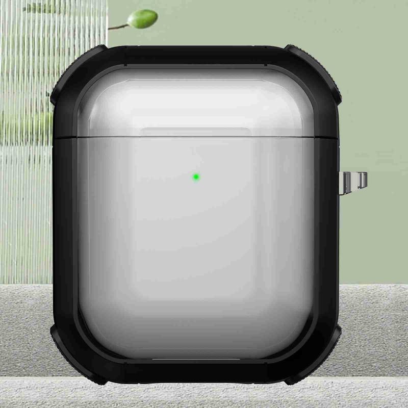 For AirPods 2 / 1 Thunder Transparent Armor Wireless Earphones Protective Case(Black)