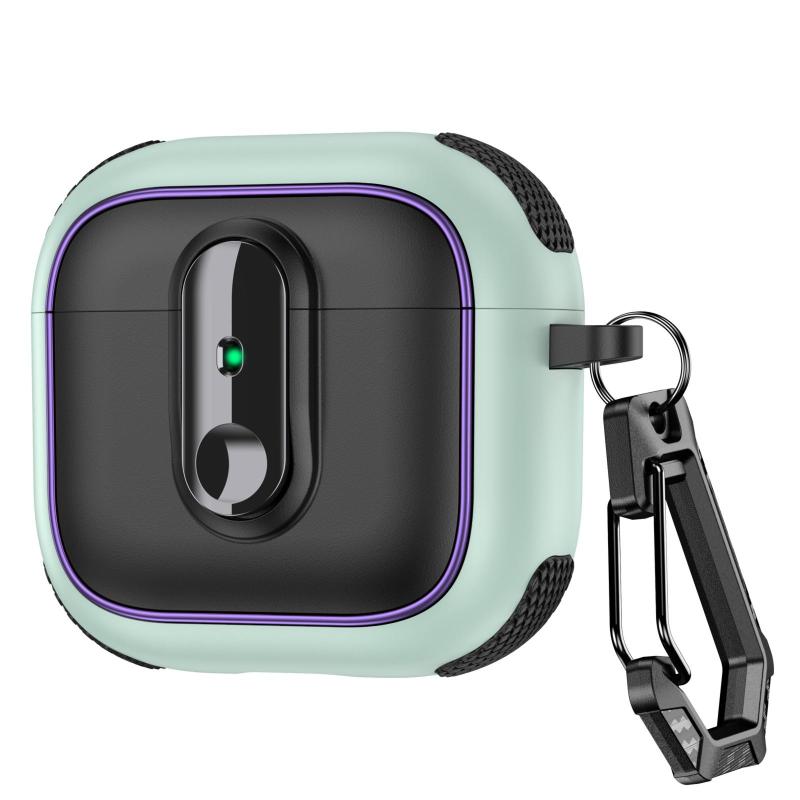For AirPods 4 Armor Magnetic Wireless Earphones Case with Security Lock(Black Mint Green)