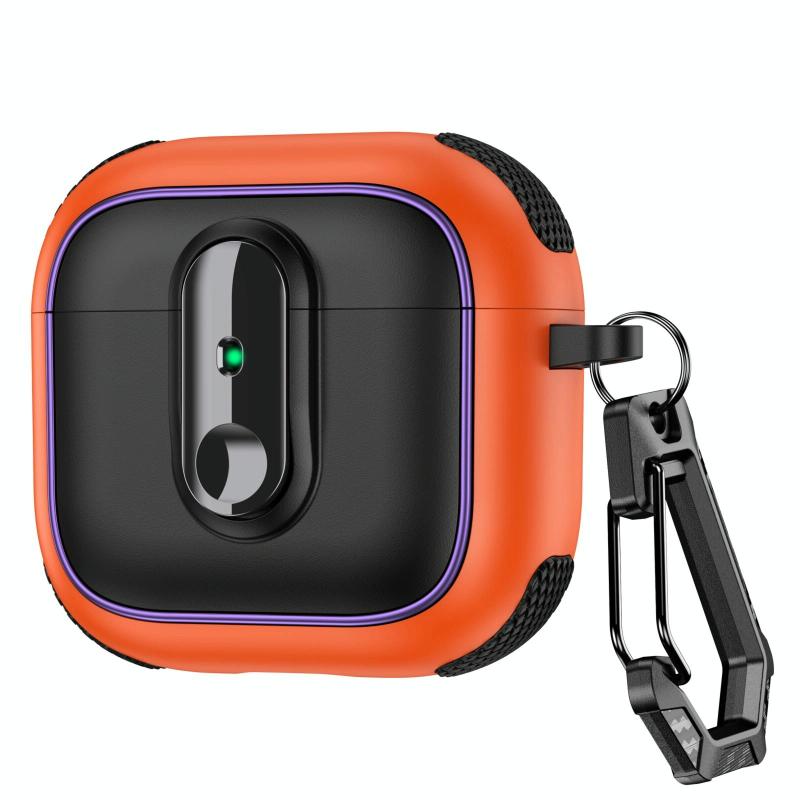 For AirPods 4 Armor Magnetic Wireless Earphones Case with Security Lock(Black Orange)