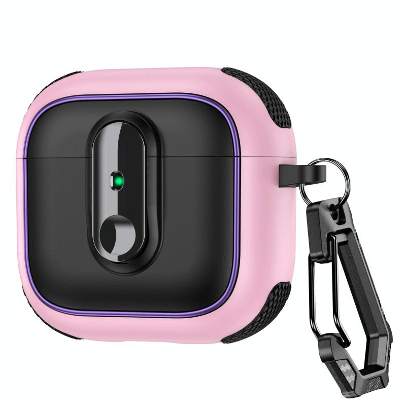 For AirPods 4 Armor Magnetic Wireless Earphones Case with Security Lock(Black Pink)