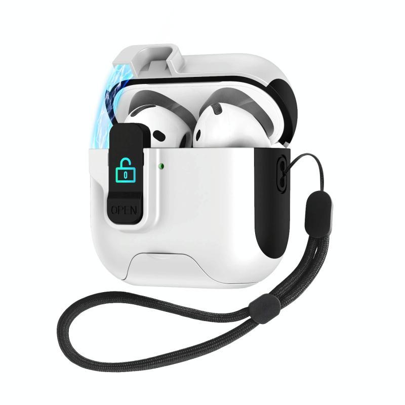 For AirPods 4 Automatic Pop-up Cover Holder Earphone Case with Switch Lock(White Black)