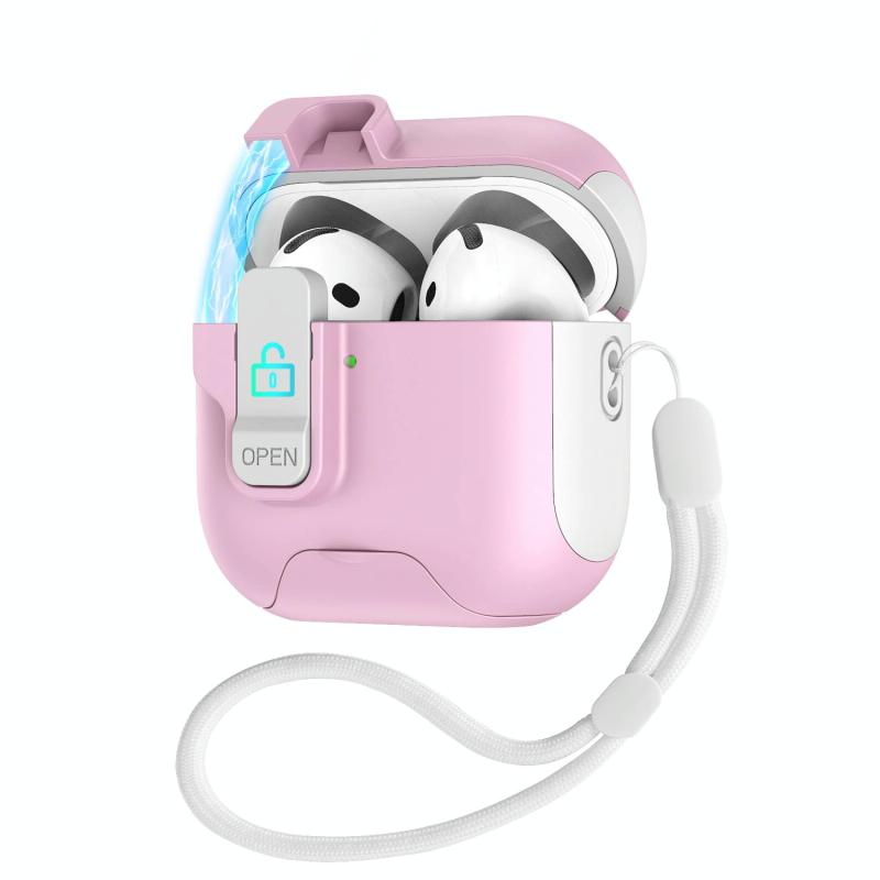 For AirPods 4 Automatic Pop-up Cover Holder Earphone Case with Switch Lock(White Pink)