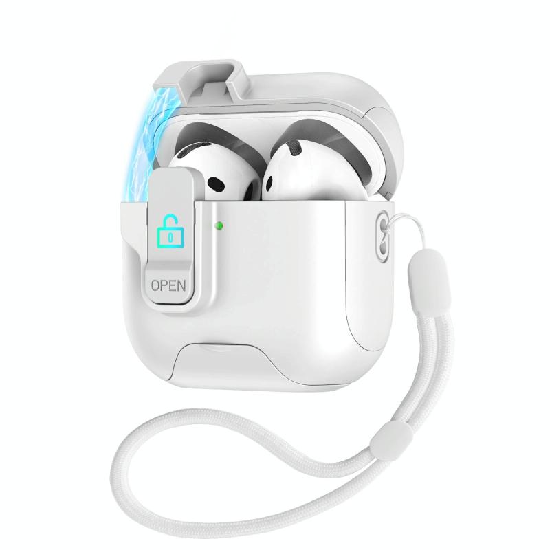 For AirPods 4 Automatic Pop-up Cover Holder Earphone Case with Switch Lock(White)
