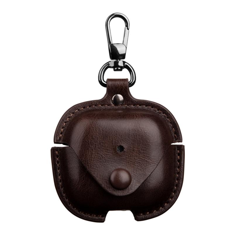 For AirPods 4 Business Leather Earphone Protective Case with Hook(Dark Brown)