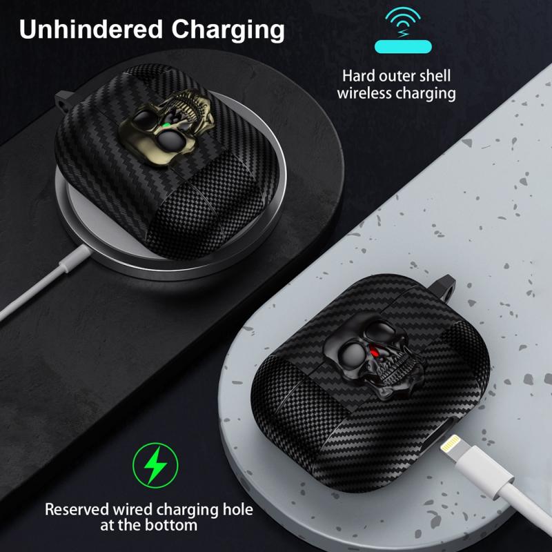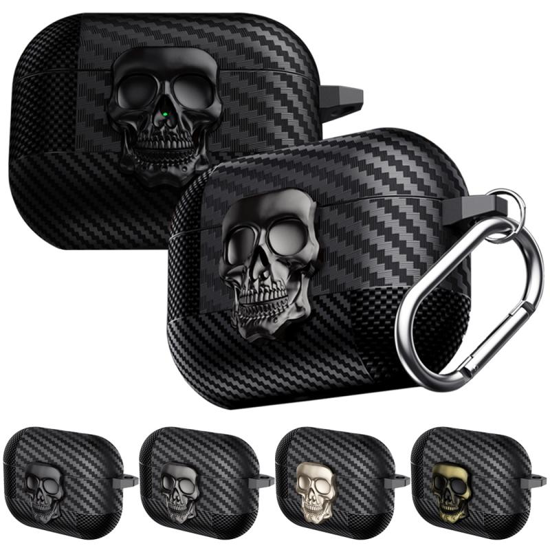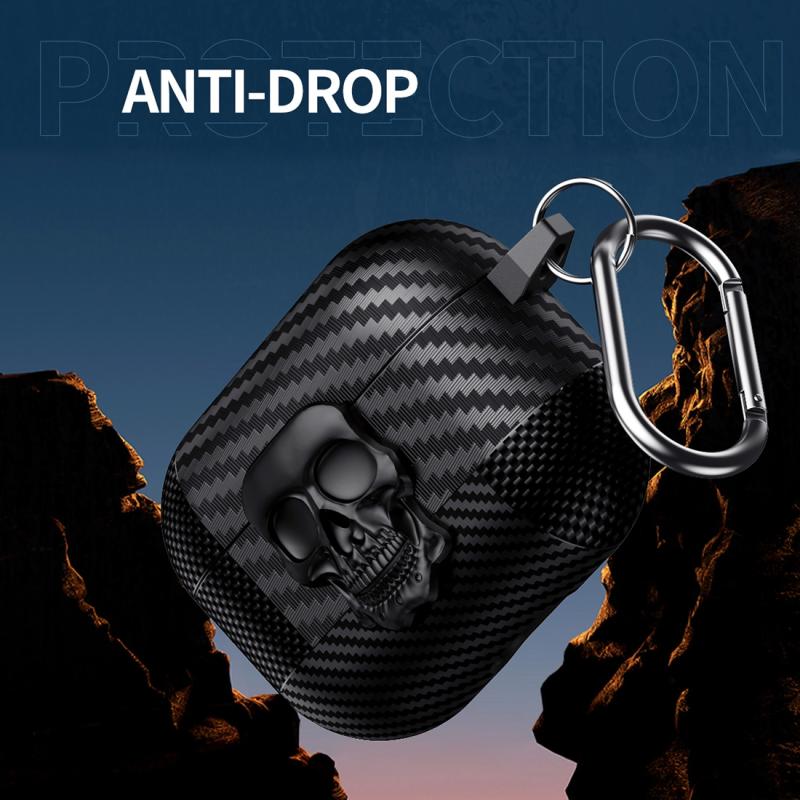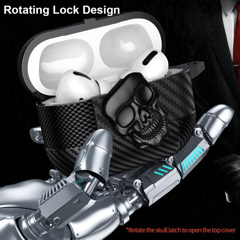 For AirPods 4 Carbon Fiber Pattern Skull Lock Bluetooth Earphone Protective Case(Black)