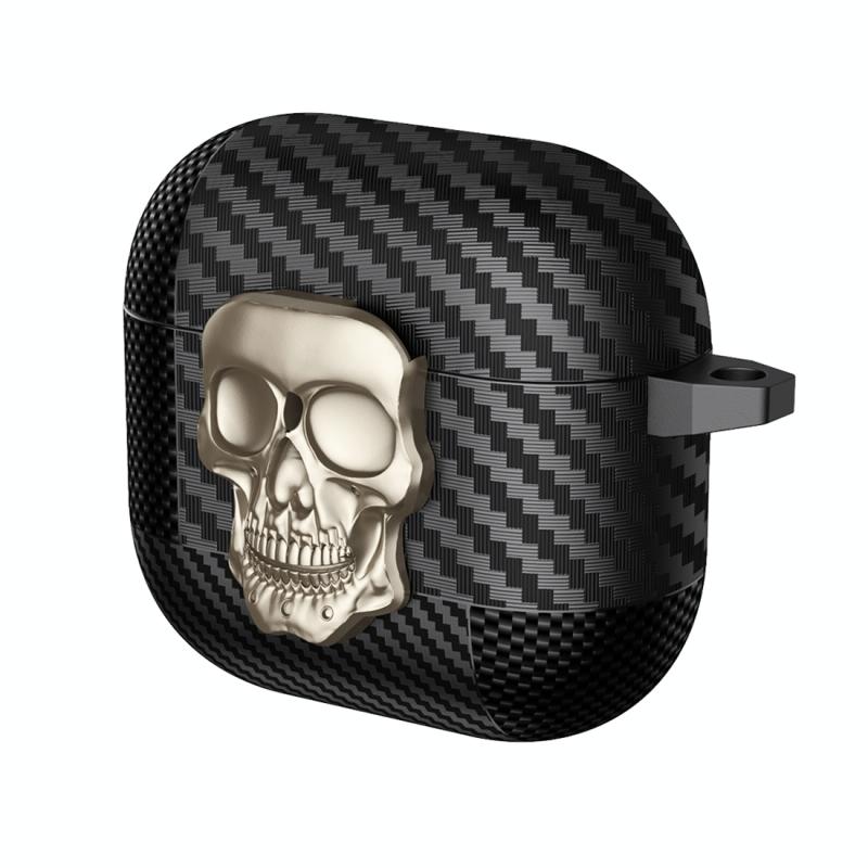For AirPods 4 Carbon Fiber Pattern Skull Lock Bluetooth Earphone Protective Case(Gold)