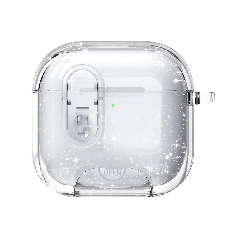 For AirPods 4 Clear Armor Security Lock Wireless Earphones Case with Hook & Holder(Transparent Glitter)