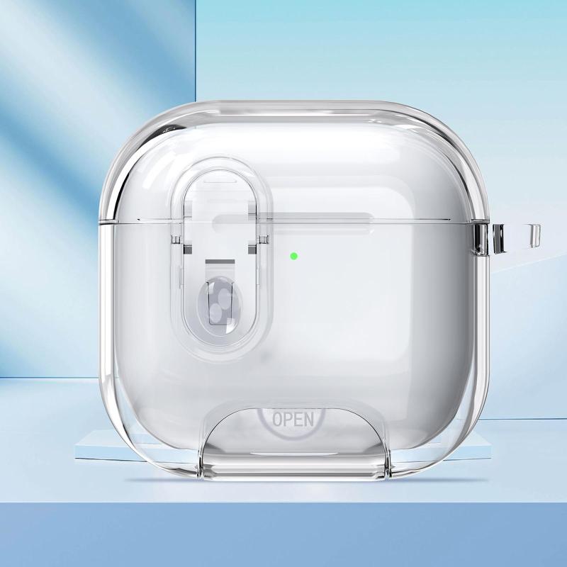 For AirPods 4 Clear Armor Security Lock Wireless Earphones Case with Hook & Holder(Transparent)