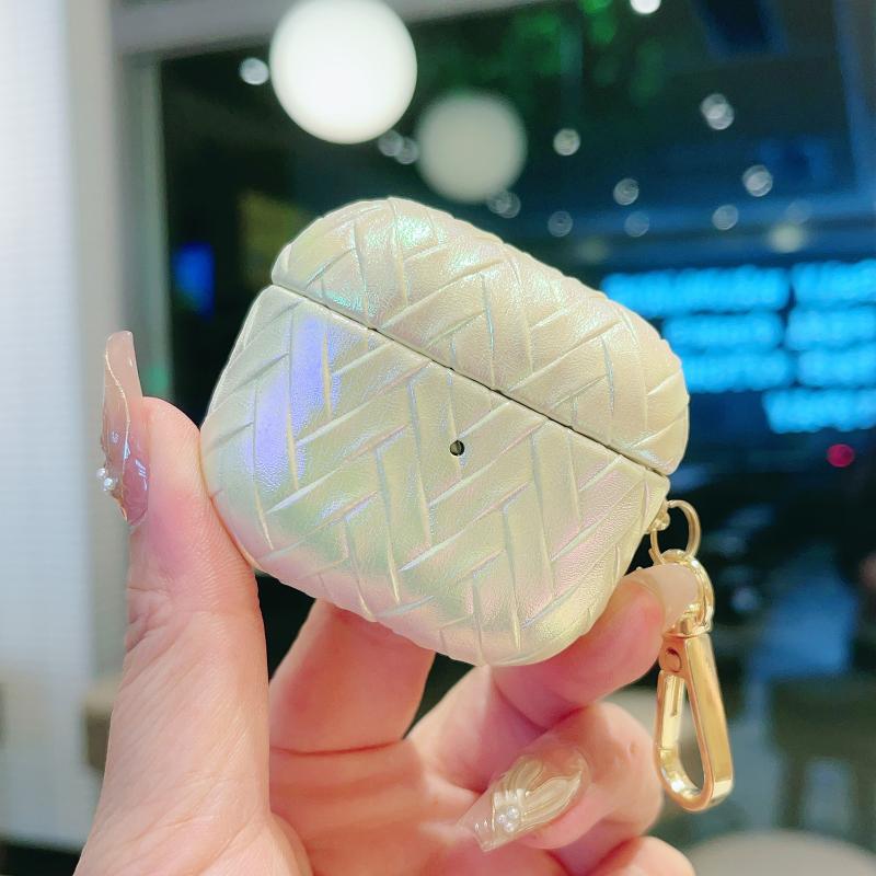 For AirPods 4 Colorful Weaving Texture Earbuds Box PC Case with Hook(White)