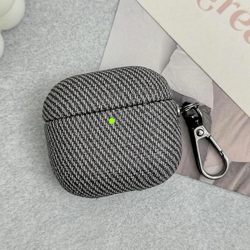 For AirPods 4 Diagonal Striped Leather Bluetooth Earphone Protective Case(Black)