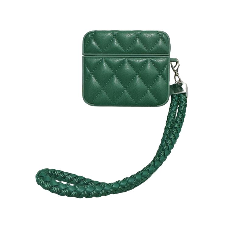For AirPods 4 Down Coat Texture PU Earbuds Box PC Case with Lanyard(Green)