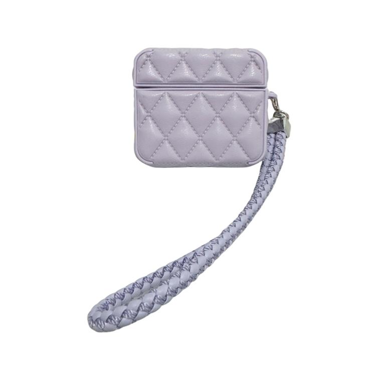For AirPods 4 Down Coat Texture PU Earbuds Box PC Case with Lanyard(Purple)