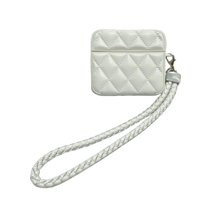 For AirPods 4 Down Coat Texture PU Earbuds Box PC Case with Lanyard(White)