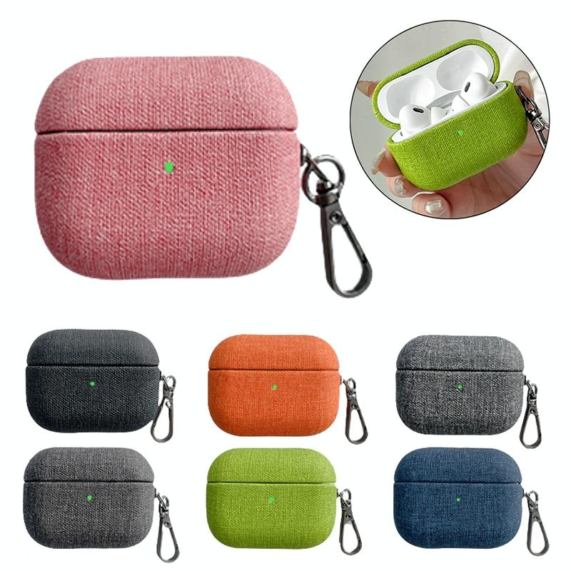 For AirPods 4 Fine Cloth Texture Earbuds Box PC Case with Hook(Black)