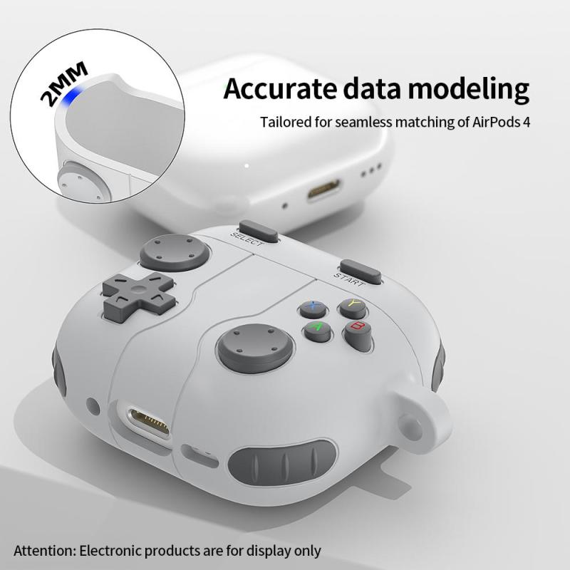 For AirPods 4 Game Console Style Wireless Earphone Silicone Case(Rock Grey)