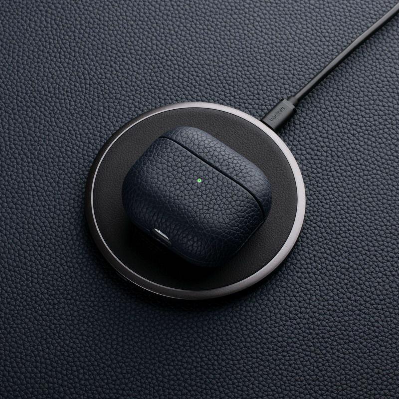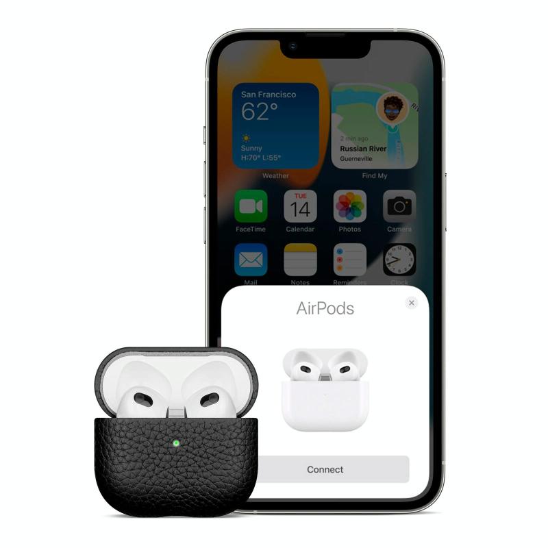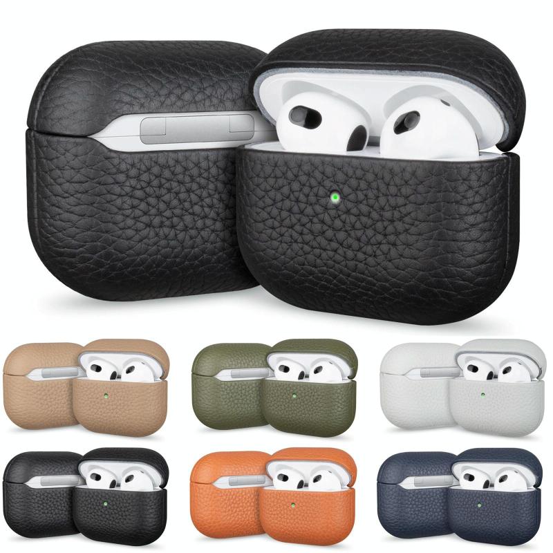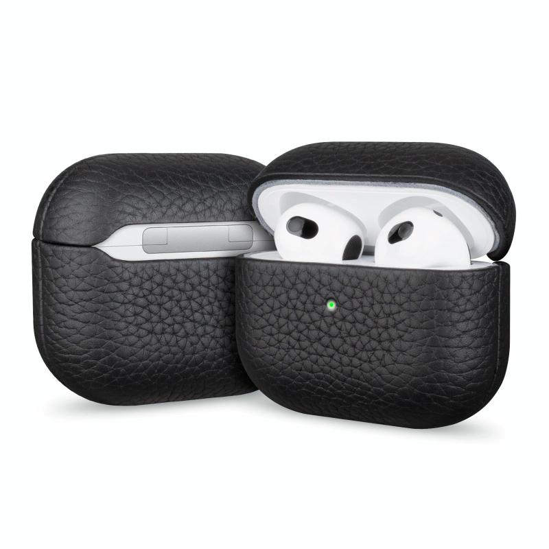 For AirPods 4 Litchi Grain Genuine Leather Earbuds Protective Case(Black)