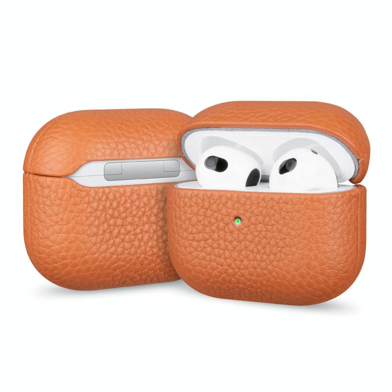 For AirPods 4 Litchi Grain Genuine Leather Earbuds Protective Case(Brown)