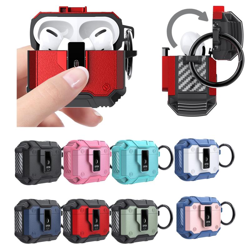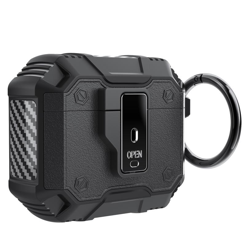 For AirPods 4 Non-slip Armor Shockproof Earphones Case with Hook(Black)
