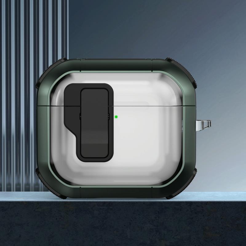 For AirPods 4 Thunder Clear Wireless Earphones Protective Case with Magnetic Switch(Army Green)