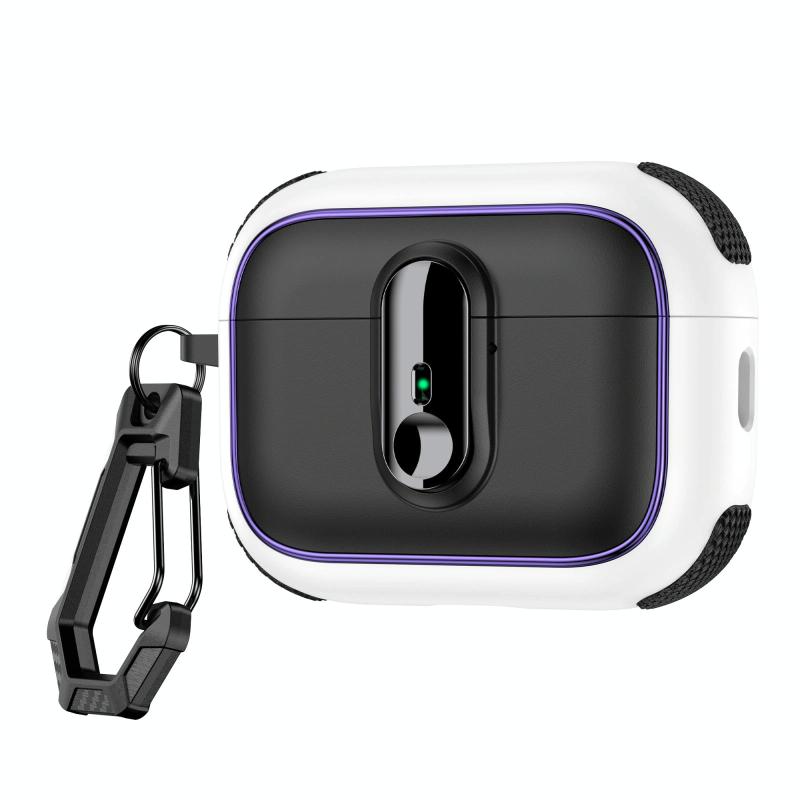 For AirPods Pro Armor Magnetic Wireless Earphones Case with Security Lock(Black White)
