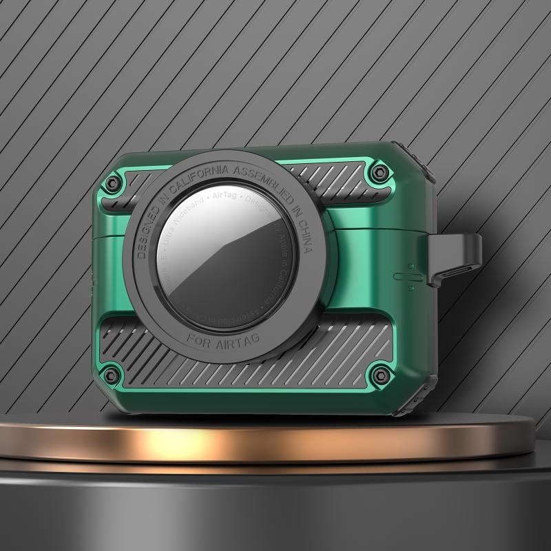 For AirPods Pro Automatic Flip Switch TPU+PC Earphone Case with AirTag(Dark Green)